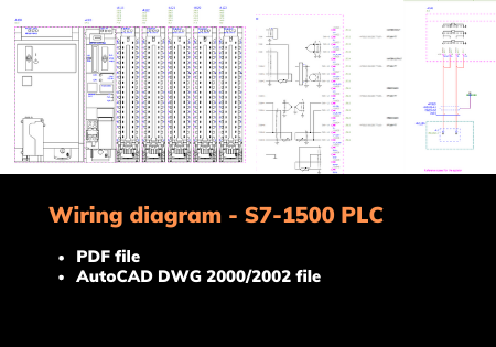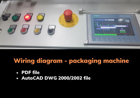 Download and see for yourself how a circuit diagram for an industrial packaging machine looks like. PLC is Siemens S7-1200, the safety system is a Sick safety controller (an advanced version of a safety relay) and the power system consists of a number of motors. You get the project in PDF format and in AutoCAD DWG 2000/2002 format.